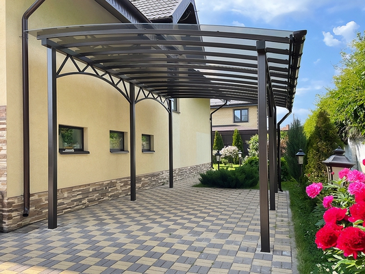 Навес автомобильный из монолитного поликарбоната арочный для загородного дома